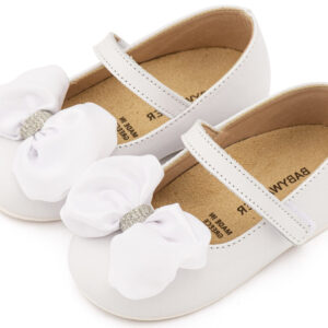 Βαπτιστικά Παπούτσια Κορίτσι Γοβάκι Λευκό με Φιόγκο & Σκρατς Premium